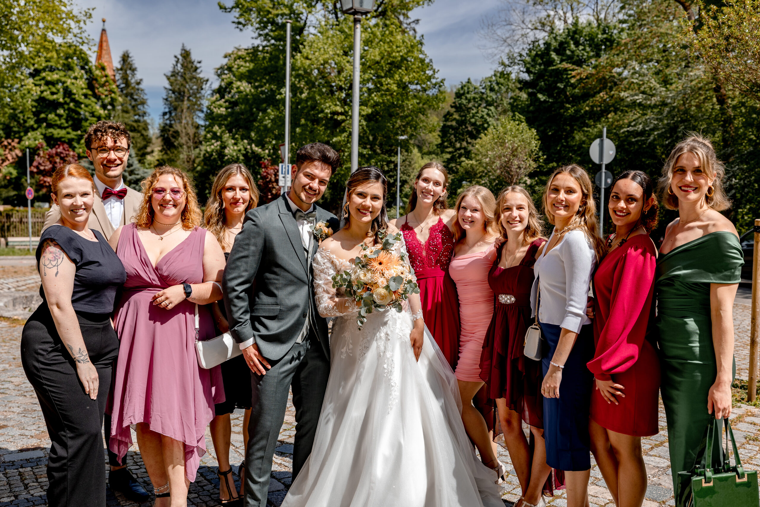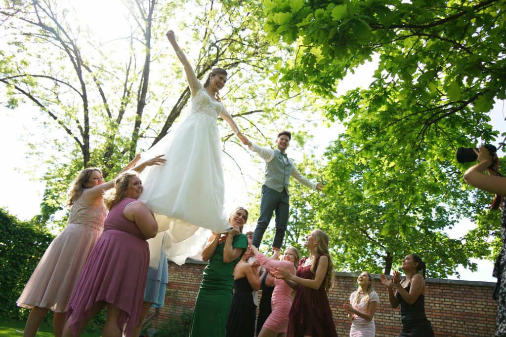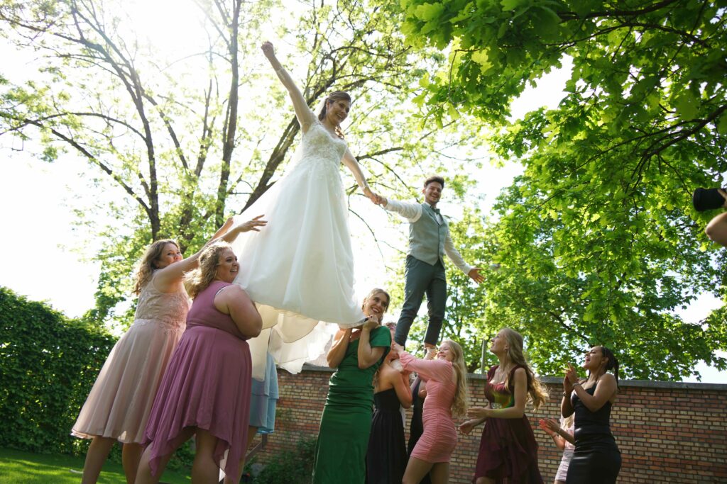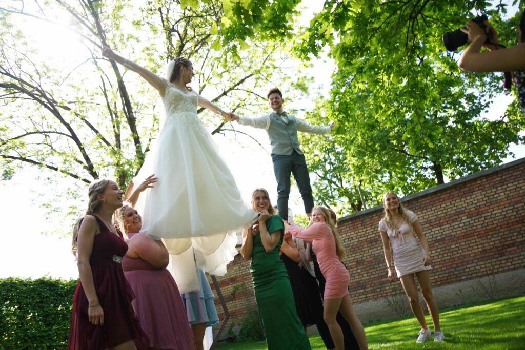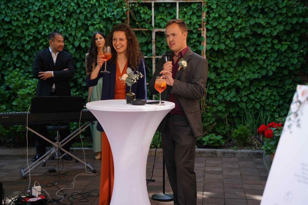Knapp 1,5 Jahre lang haben wir geplant… Mehr als 20 Locations besucht, mit über 15 verschiedenen Dienstleistern Tag für Tag Kontakt gehalten und uns mit jeder vergangenen Minute mehr auf unseren großen Tag gefreut. Mit jeder Stunde die wir näher an den 4. Mai 2024 herankamen, fielen uns neue Details ein, Herausforderungen stellten sich uns in den Weg und die Füße wurden immer kälter – doch zum Glück hatten wir euch, unsere Familien, Freunde und unsere wunderbaren Trauzeugen, die uns in all diesen Situationen unterstützt haben. Als Brautpaar macht man sich Gedanken über Kleinigkeiten und will alles im Griff haben – welche Sorten sollen im Hochzeitskuchen stecken, welche Farbe haben die Tischläufer, wer sitzt neben wem? Ja, wir haben alles geplant, was wir planen konnten – doch am Ende habt Ihr dafür gesorgt, dass unser Hochzeitstag unvergesslich wurde.