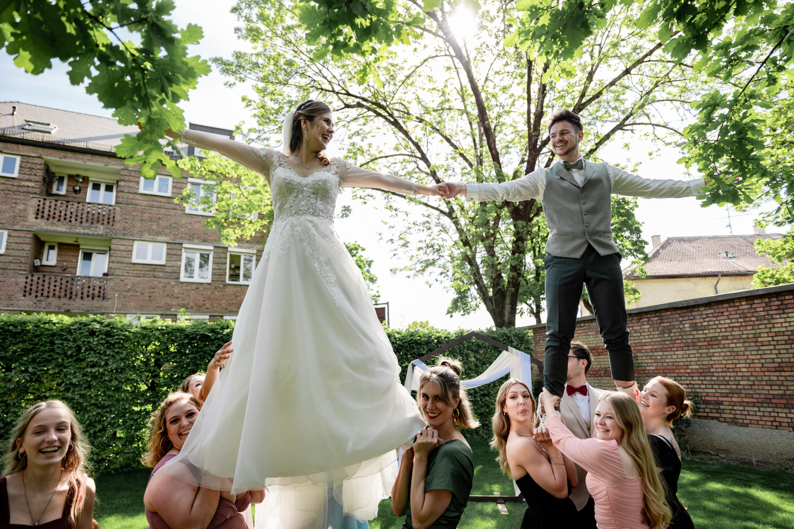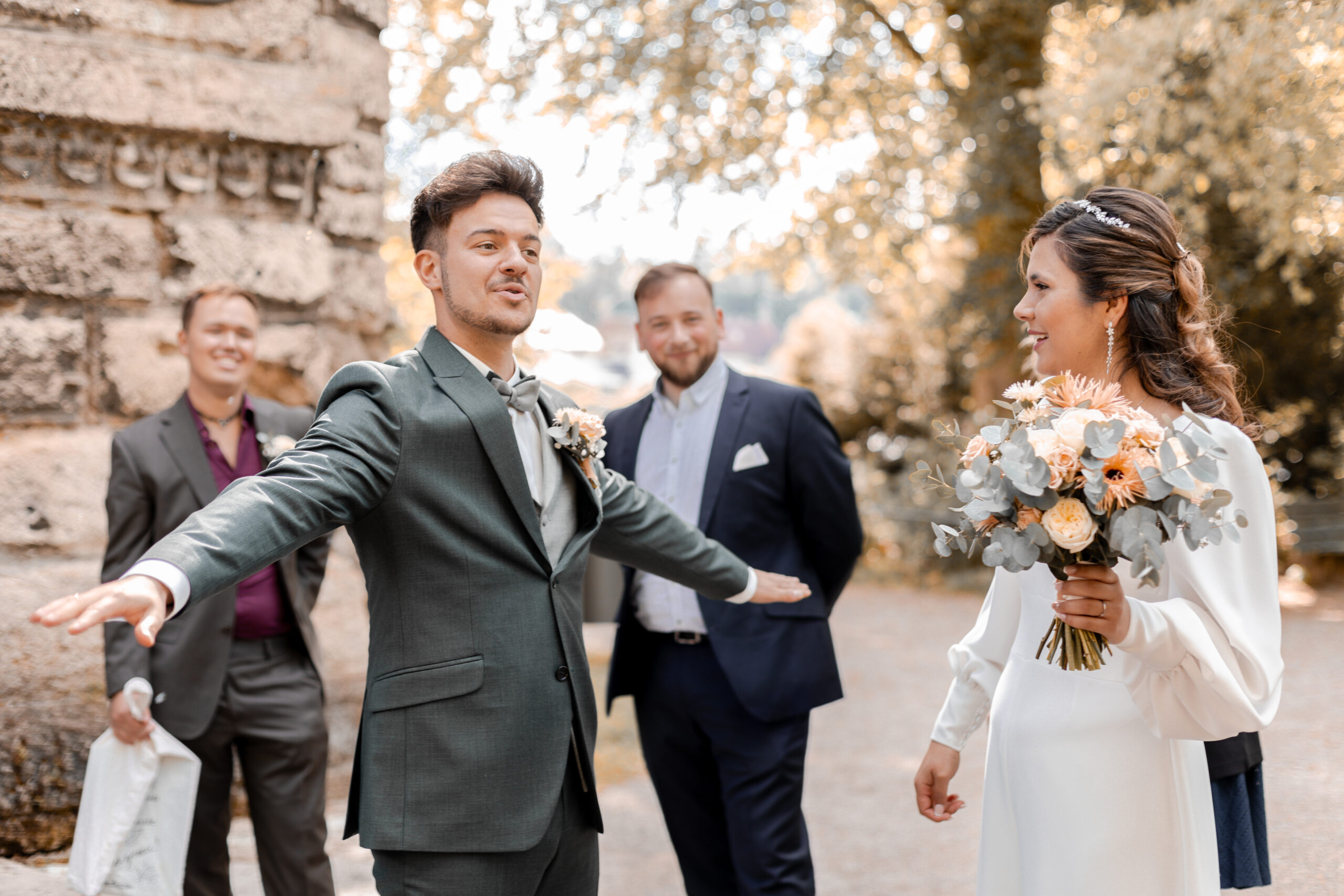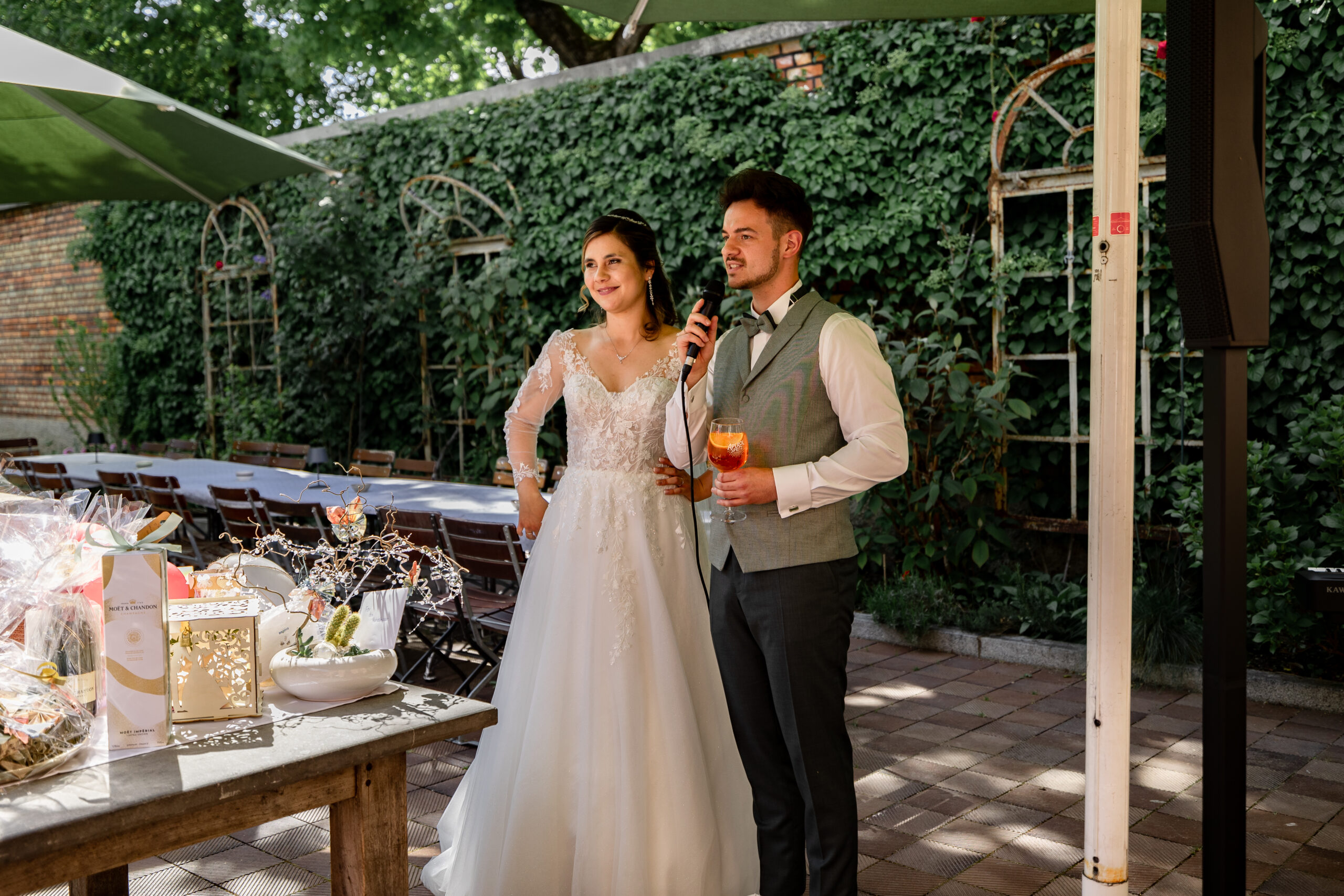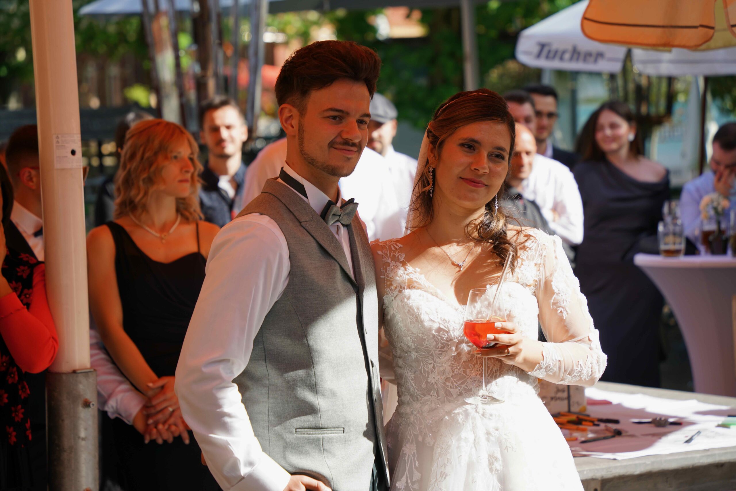 Knapp 1,5 Jahre lang haben wir geplant… Mehr als 20 Locations besucht, mit über 15 verschiedenen Dienstleistern Tag für Tag Kontakt gehalten und uns mit jeder vergangenen Minute mehr auf unseren großen Tag gefreut. Mit jeder Stunde die wir näher an den 4. Mai 2024 herankamen, fielen uns neue Details ein, Herausforderungen stellten sich uns in den Weg und die Füße wurden immer kälter – doch zum Glück hatten wir euch, unsere Familien, Freunde und unsere wunderbaren Trauzeugen, die uns in all diesen Situationen unterstützt haben. Als Brautpaar macht man sich Gedanken über Kleinigkeiten und will alles im Griff haben – welche Sorten sollen im Hochzeitskuchen stecken, welche Farbe haben die Tischläufer, wer sitzt neben wem? Ja, wir haben alles geplant, was wir planen konnten – doch am Ende habt Ihr dafür gesorgt, dass unser Hochzeitstag unvergesslich wurde.