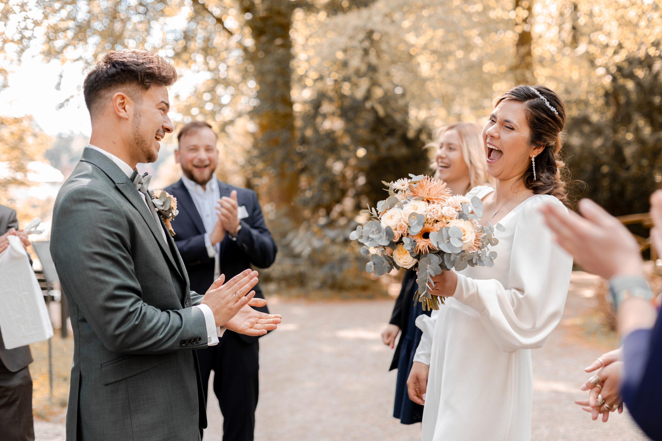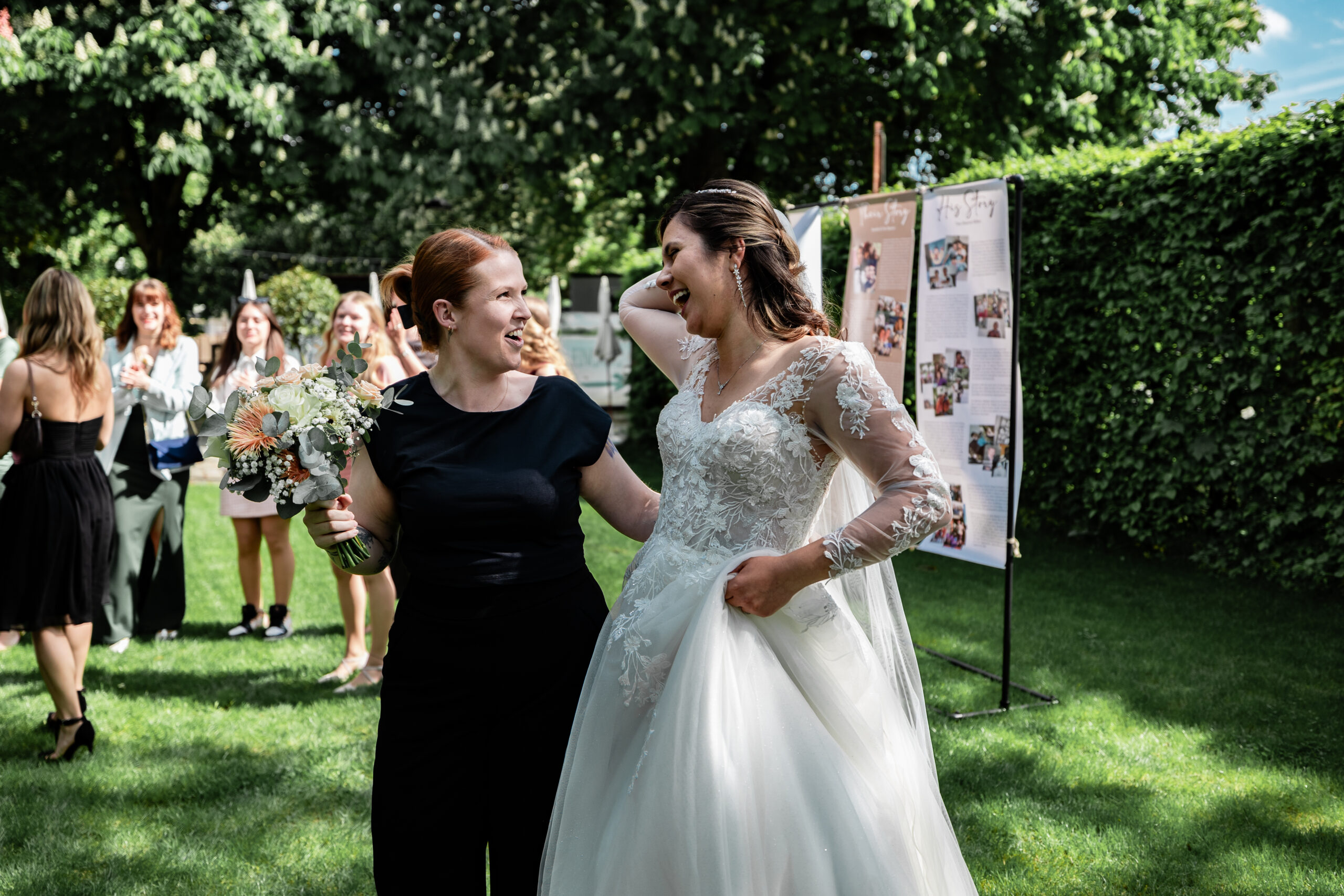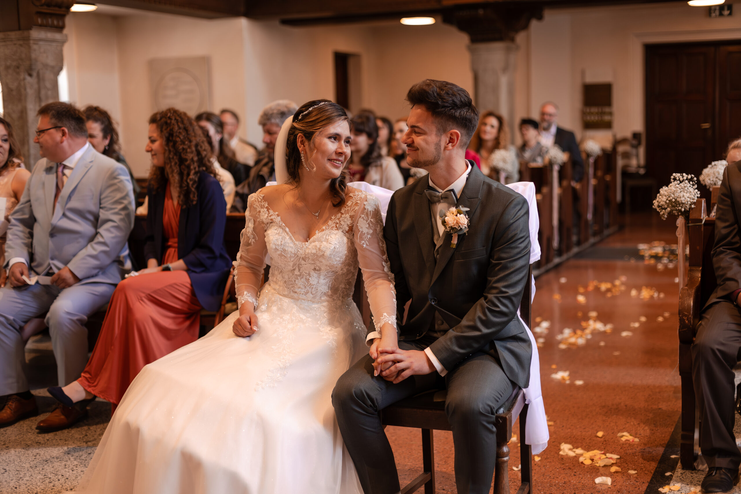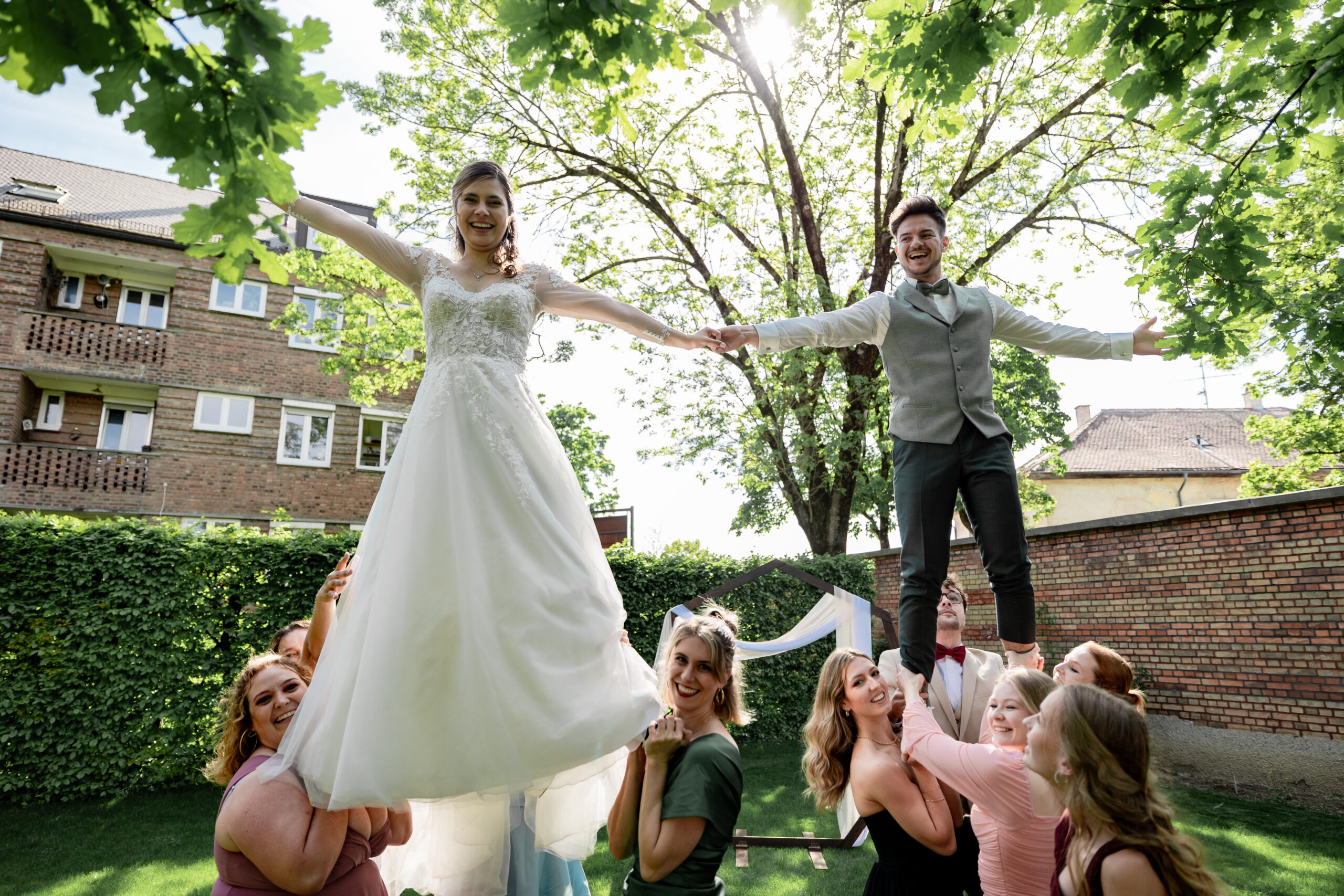 Knapp 1,5 Jahre lang haben wir geplant… Mehr als 20 Locations besucht, mit über 15 verschiedenen Dienstleistern Tag für Tag Kontakt gehalten und uns mit jeder vergangenen Minute mehr auf unseren großen Tag gefreut. Mit jeder Stunde die wir näher an den 4. Mai 2024 herankamen, fielen uns neue Details ein, Herausforderungen stellten sich uns in den Weg und die Füße wurden immer kälter – doch zum Glück hatten wir euch, unsere Familien, Freunde und unsere wunderbaren Trauzeugen, die uns in all diesen Situationen unterstützt haben. Als Brautpaar macht man sich Gedanken über Kleinigkeiten und will alles im Griff haben – welche Sorten sollen im Hochzeitskuchen stecken, welche Farbe haben die Tischläufer, wer sitzt neben wem? Ja, wir haben alles geplant, was wir planen konnten – doch am Ende habt Ihr dafür gesorgt, dass unser Hochzeitstag unvergesslich wurde.